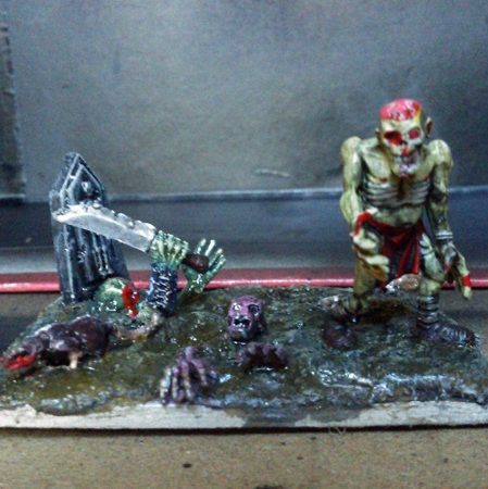Myślę że warto się w tym miejscu przedstawić. Jestem Furiusz, moja przygoda z modelarstwem nie zaczęła się jak u wielu osób – od gazetek z figurkami z Władcy Pierścieni, rodzice uważali to za stratę pieniędzy. Dopiero kilka lat później zacząłem zbierać swoje pierwsze figurki do Warhammer Fantasy Battle, było to jeszcze za czasów 7 edycji 😉 Za nastoletnich czasów zdecydowanie skupiałem się na graniu i malowaniu poświęcałem skrajnie mało czasu, jak z resztą widać na zdjęciu poniżej, jest to jeden z moich pierwszych modeli (a przynajmniej najstarsze zdjęcie jakie udało mi się odnaleźć).